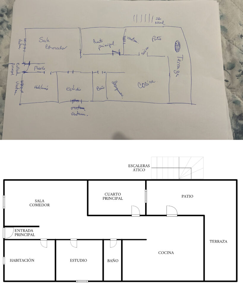 Convierte bocetos a mano en planos profesionales. Envíanos tu dibujo o plano antiguo y lo transformamos en un archivo digital limpio y comercial, ideal para transmitir calidad en tus anuncios.